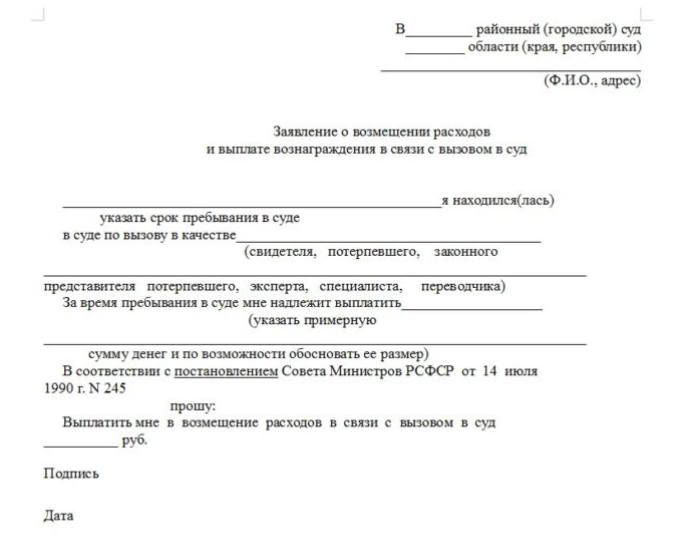 - заявление о возмещении судебных расходов образец