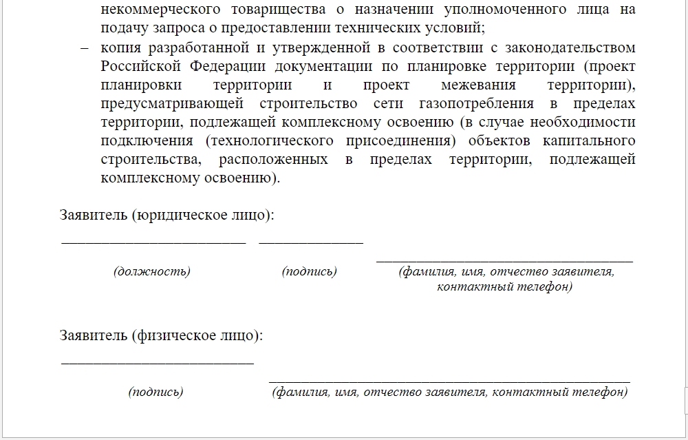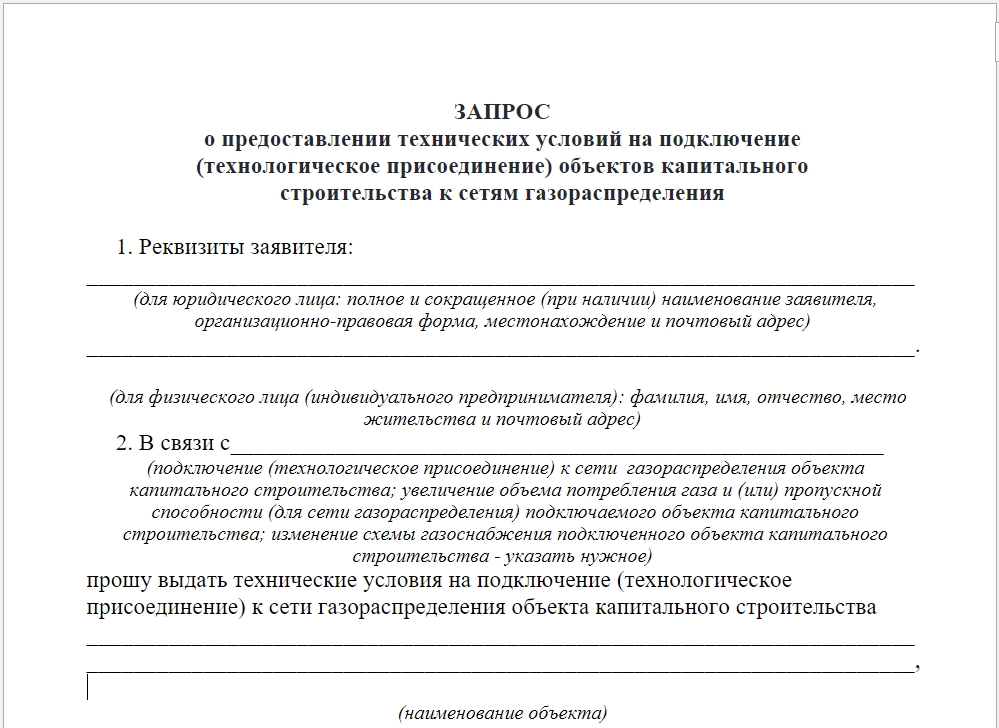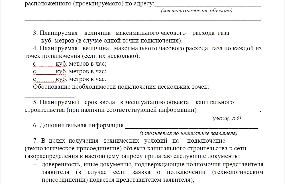 Заявление на подключение газа к частному дому