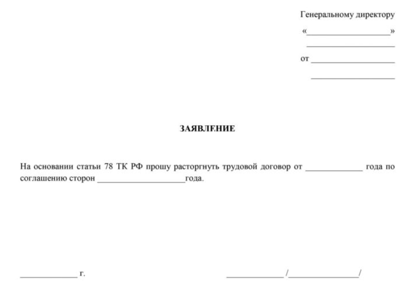 Заявление об увольнении по причине расторжения трудового сотрудничества — шаблон: