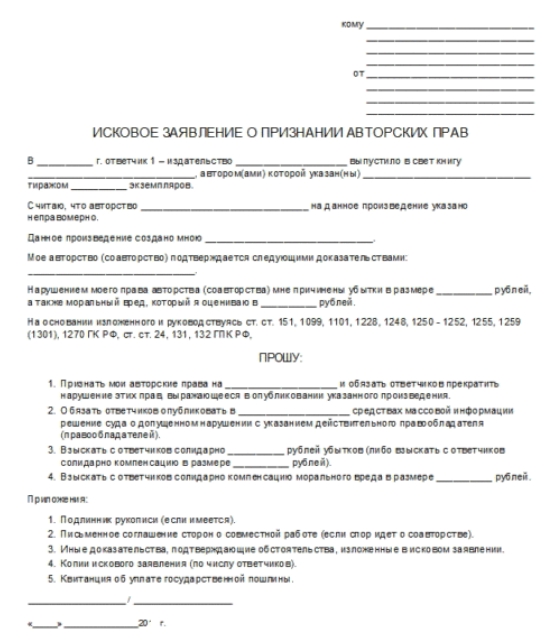 - Шаблон искового заявления