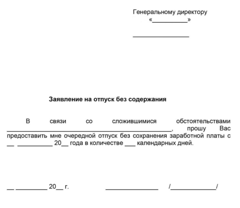 заявление на отпуск без содержания образец