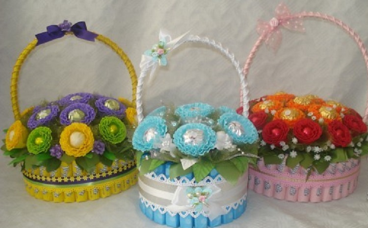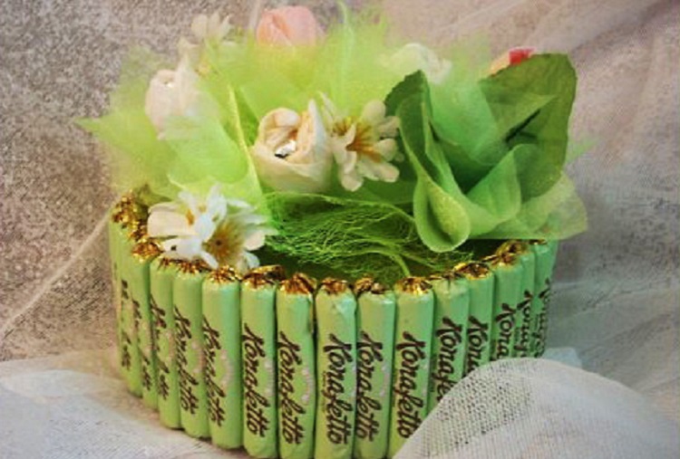 Сладкая корзинка среди подарков сейчас самая популярная. Сделать такую красоту можно и самому.
