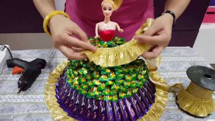 Конфетки для украшения выбирайте нескольких сортов и цветов. Тогда ваша сладкая красавица будет сверкать множеством ярких красок.