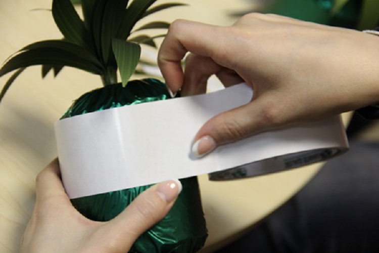 - Изначально оберните емкость приготовленными материалом. Закрепите края.
