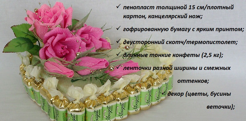 - Главное правило, цвет упаковки не должен доминировать. Основное украшение в нашем случае – конфеты.