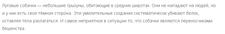 Укус бешеной собаки приводит к смерти, если вовремя не ввести вакцину. Почти 35 тыс.смертей ежегодно, по оценкам ВОЗ, случаются от укуса бешеных собак.