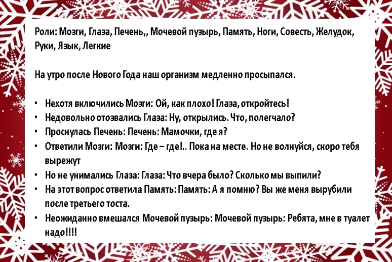 P.S. Надеемся, что наши сценки вам понравились и вы с удовольствием их разыграете их на корпоративной вечеринке.
