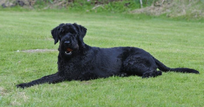 4. Ризеншнауцер. Чрезвычайно энергичная и непоседливая собака, которую можно приобрести и для семьи с детками. Они обожают детей всех возрастов, любят проводить с ними все свое время. Однако к посторонним относится с опаской и в случае чрезвычайной ситуации, могу стать на защиту вашего чада.