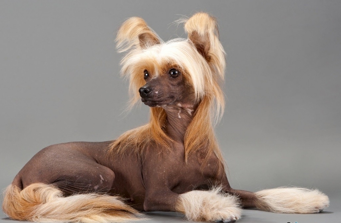 5. Китайская хохлатая. Любвеобильная собачка небольших размеров обладает ласковым и спокойным характером. Очень преданная своему хозяину и может сильно заболеть при долгой разлуке с ним. Подходит аллергикам.