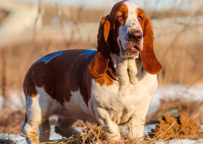 3.  Бассет-хаунд, Печальный взгляд этой собаки компаньона всего лишь прикрытие. Это умные и энергичные питомцы со спокойным характером. Любит длительные, но не активные прогулки.
