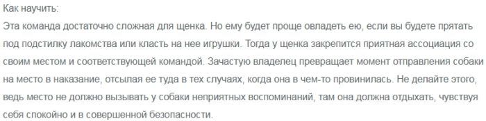 Команда: «Место!».