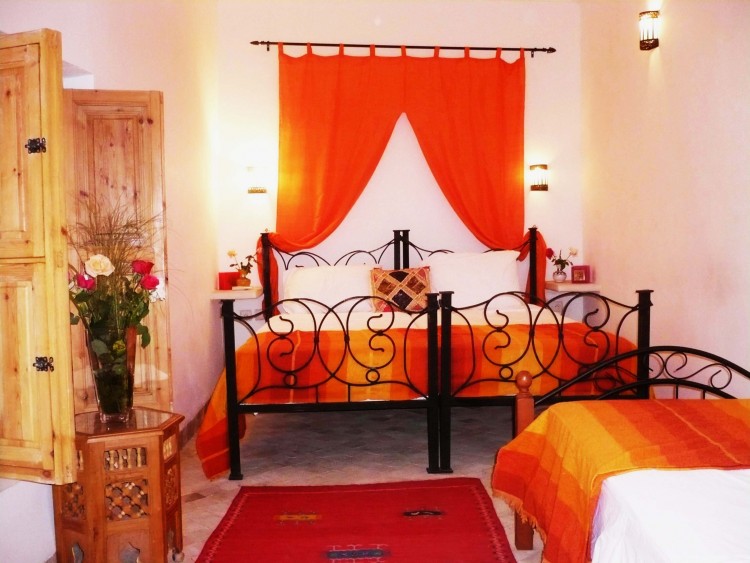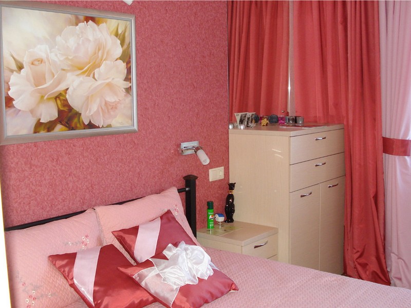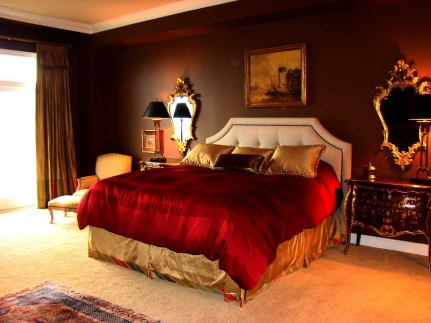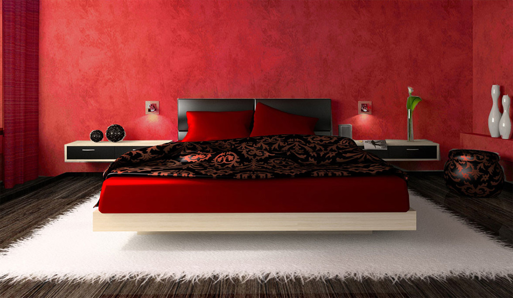 Считается, что яркие оттенки красного не особо способствуют расслаблению. Поэтому для спальни лучше подобрать, например, бордовый или терракотовый тона.