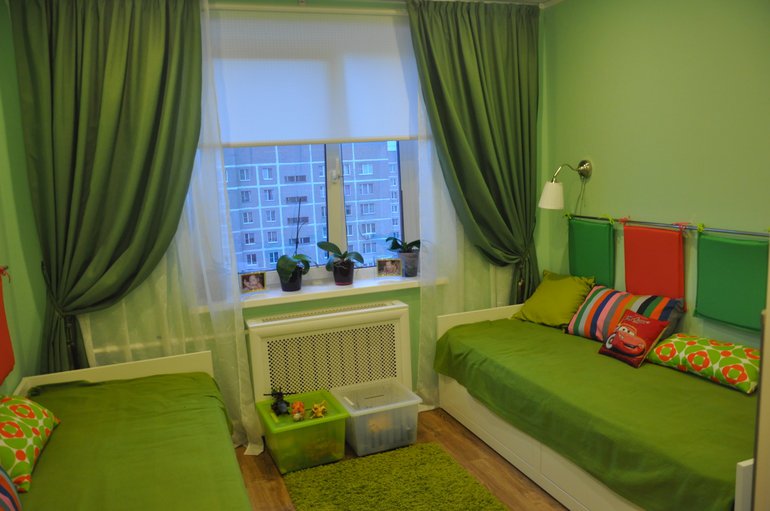 Сочный умиротворяющий зеленый, легкий и чистый белый, тонизирующий красный… Такое сочетание цветов прекрасно подходит для интерьера спальни.