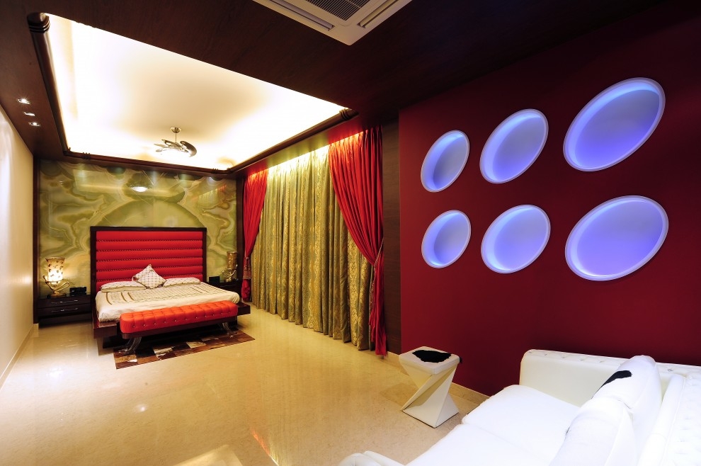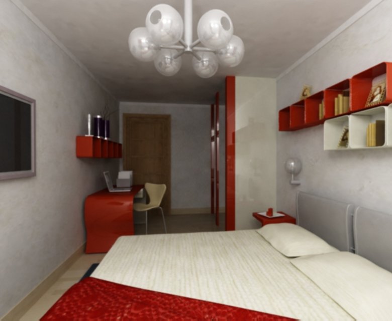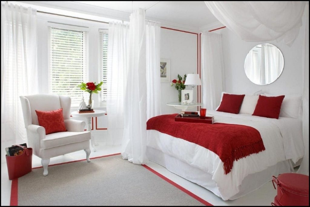 - Красный в интерьере спальни: