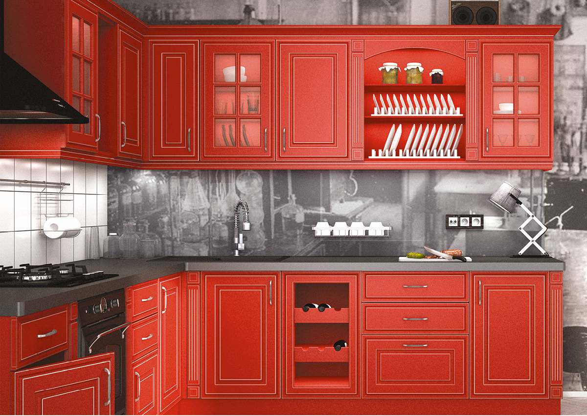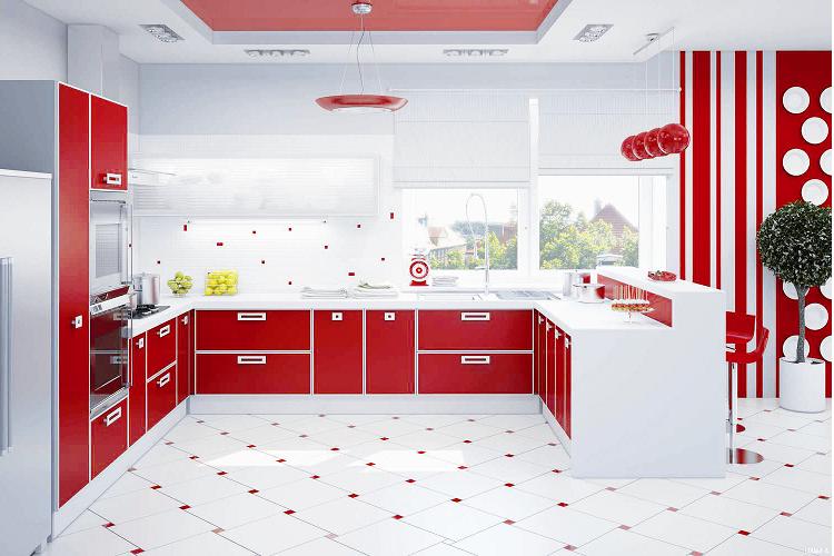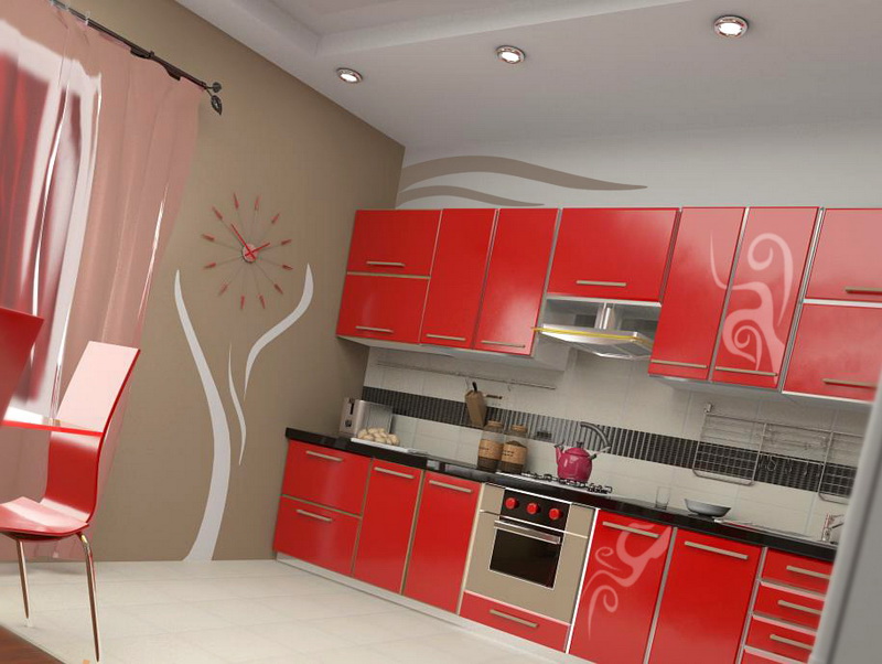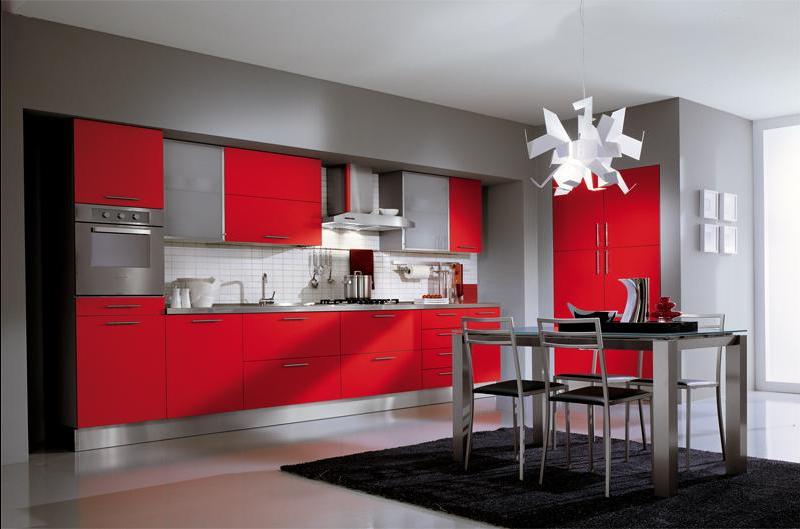 - Красный цвет в интерьере кухни