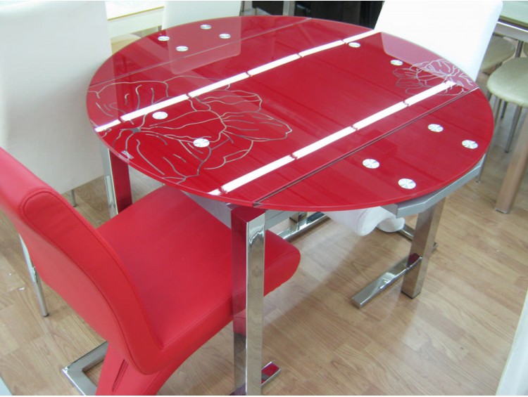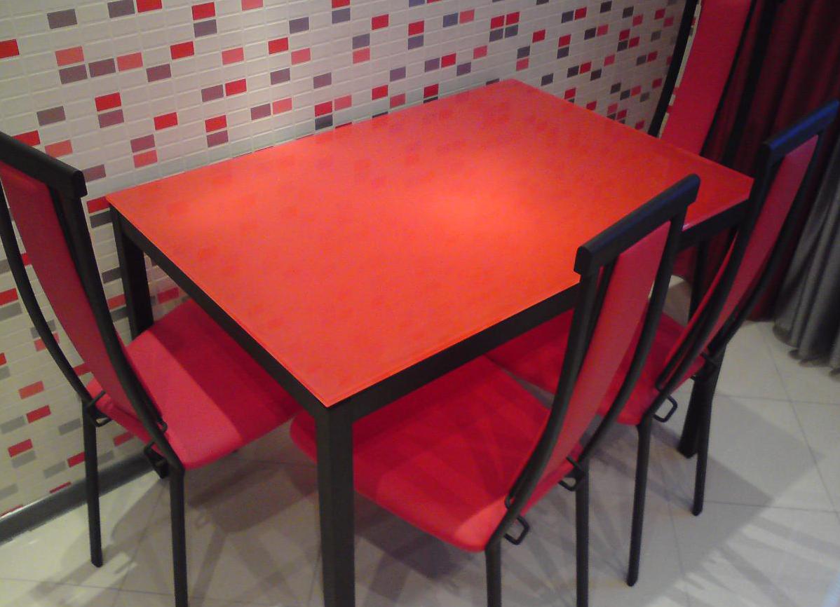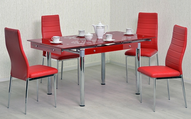 Не следует забывать, что стол с красными элементами должен сочетаться с другими деталями интерьера – стульями или холодильником, шторами или гарнитуром.
