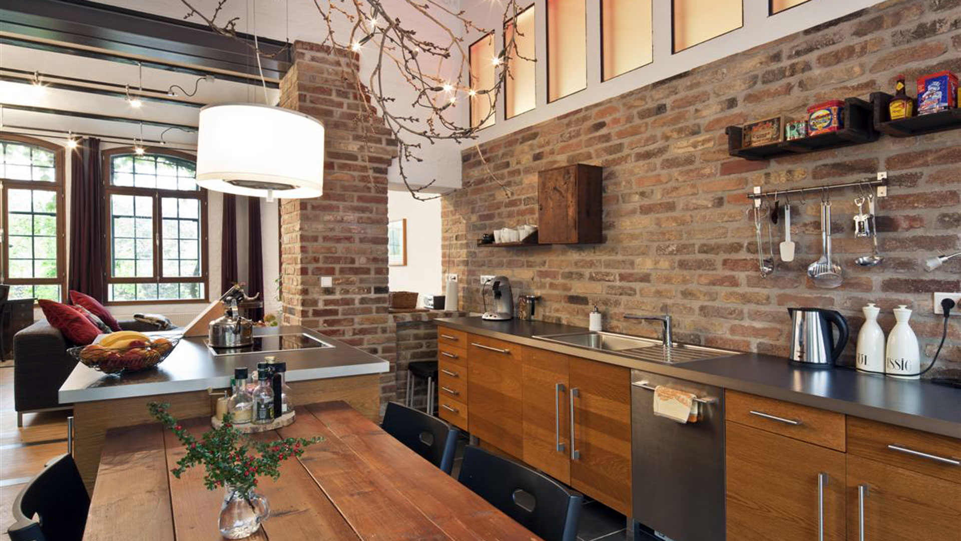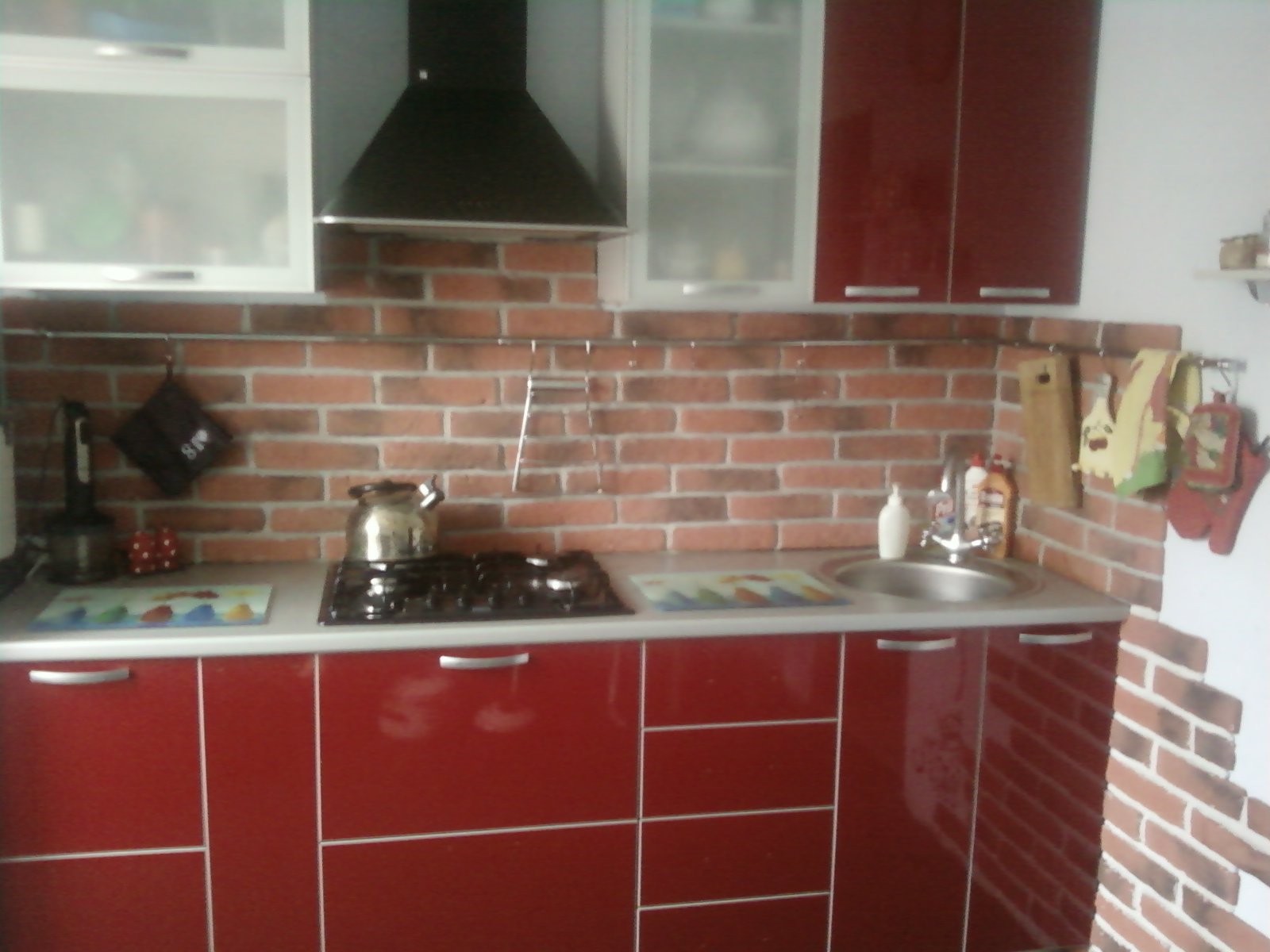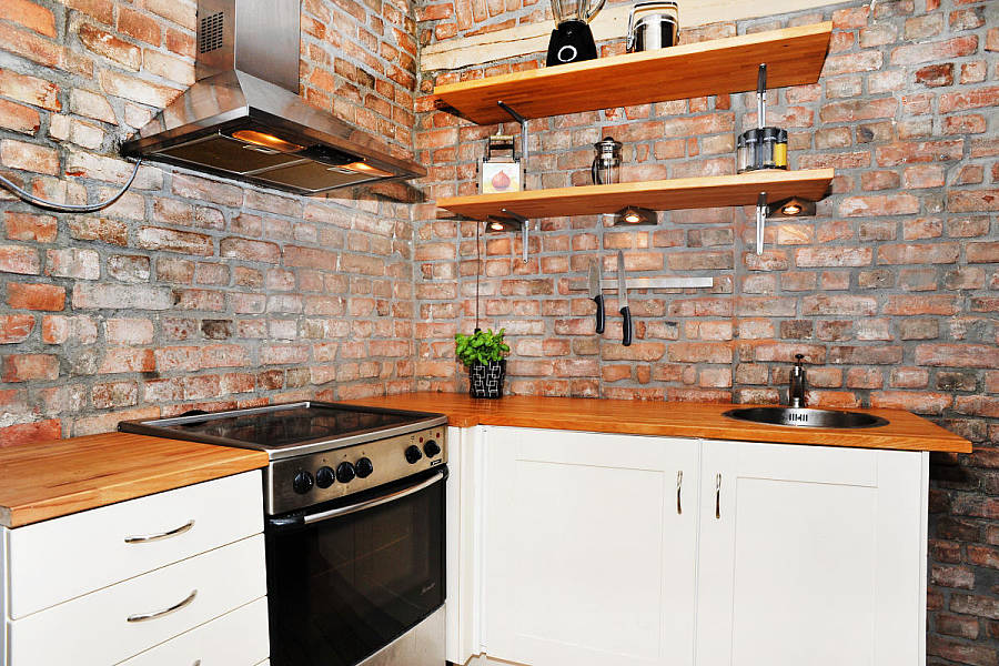 - Красный кирпич в интерьере кухни