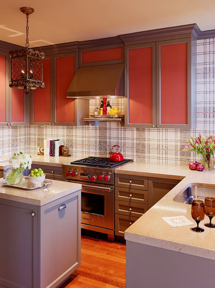 - Серо-красный интерьер кухни