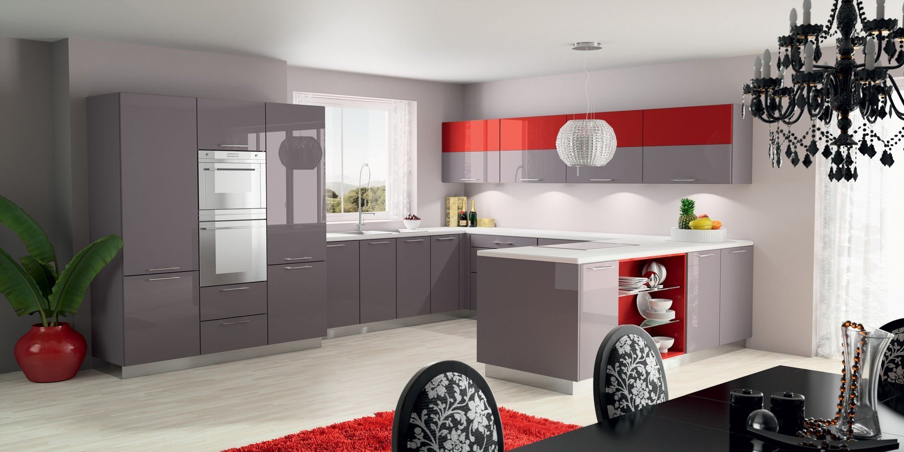 Черно бело красная кухня