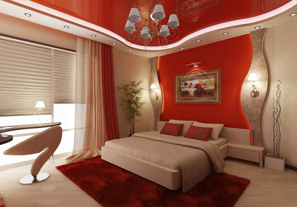 Красный в интерьере спальни: