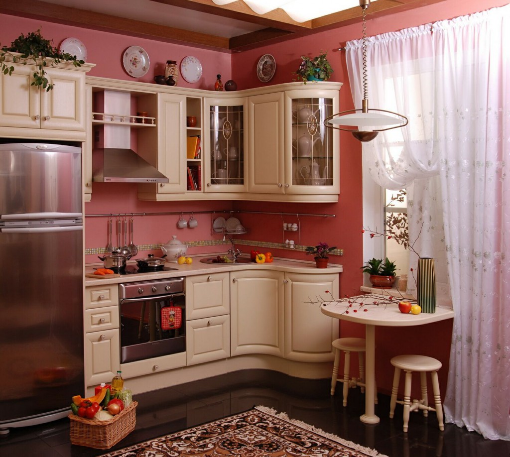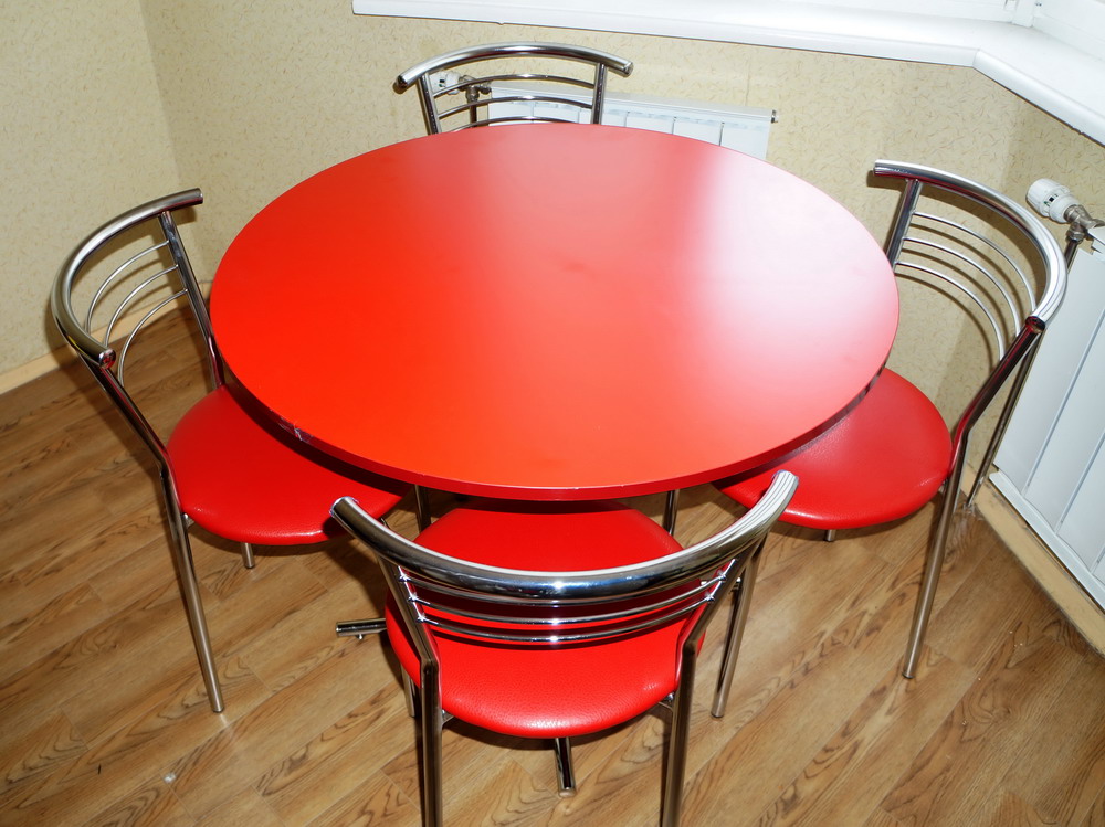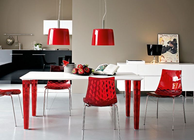 - Красный стол в интерьере кухни