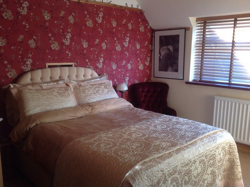 красные обои в интерьере спальни
