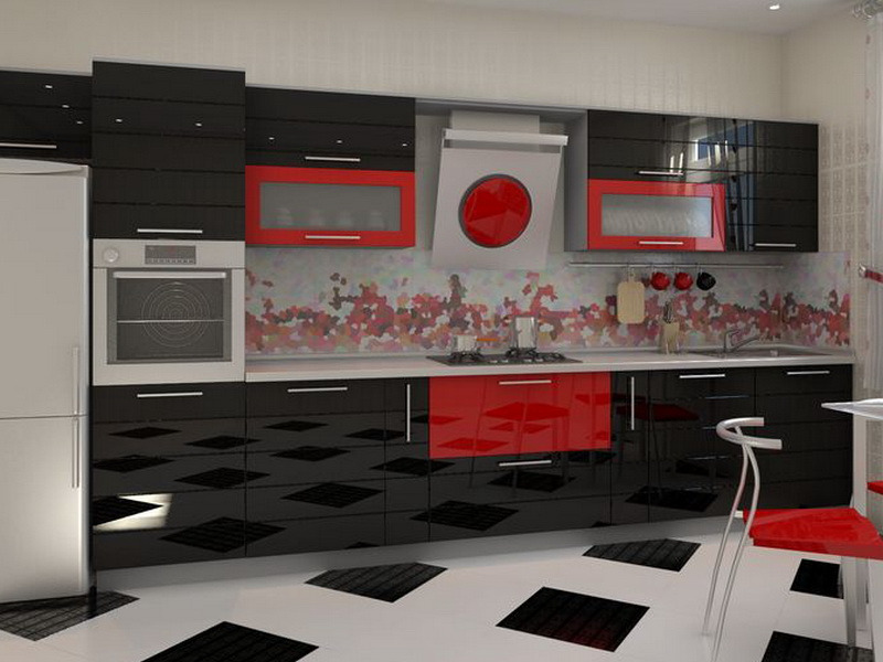 - Черно бело красная кухня
