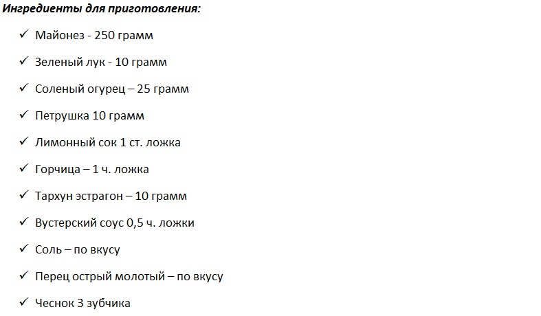 - Соус тартар рецепт с майонезом