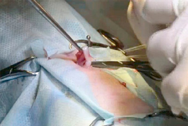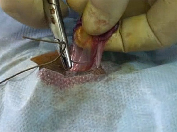 Оперативное вмешательство при боковом разрезе. Выполняется технически выше описанным методом, только сбоку. Данная методика меньше травмирует животное. Но при ней могут быть кровотечения. К тому же, она подходит только для перевязки органа, для полного его удаления она противопоказана. Применяются только при оперировании дворняжек (перевязывании труб). А при условии специального подкожного шва животное отпускают в тот же день.