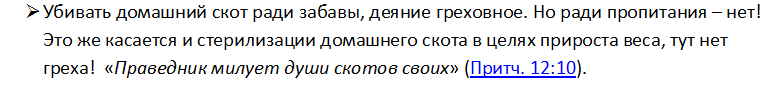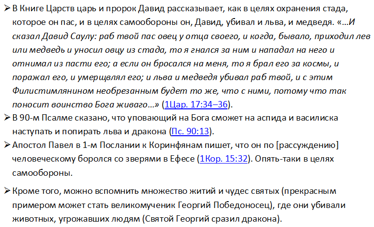Из этого следует, что убивание животных в целях самообороны к греховным деяниям не относится.
