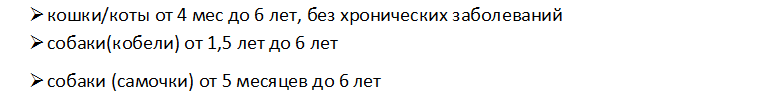- Возможно и более раннее оперирование, котиков с 5-го месяца, собачек со 2-го месяца.
