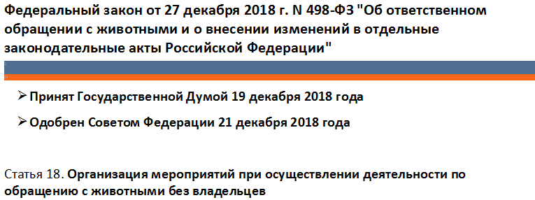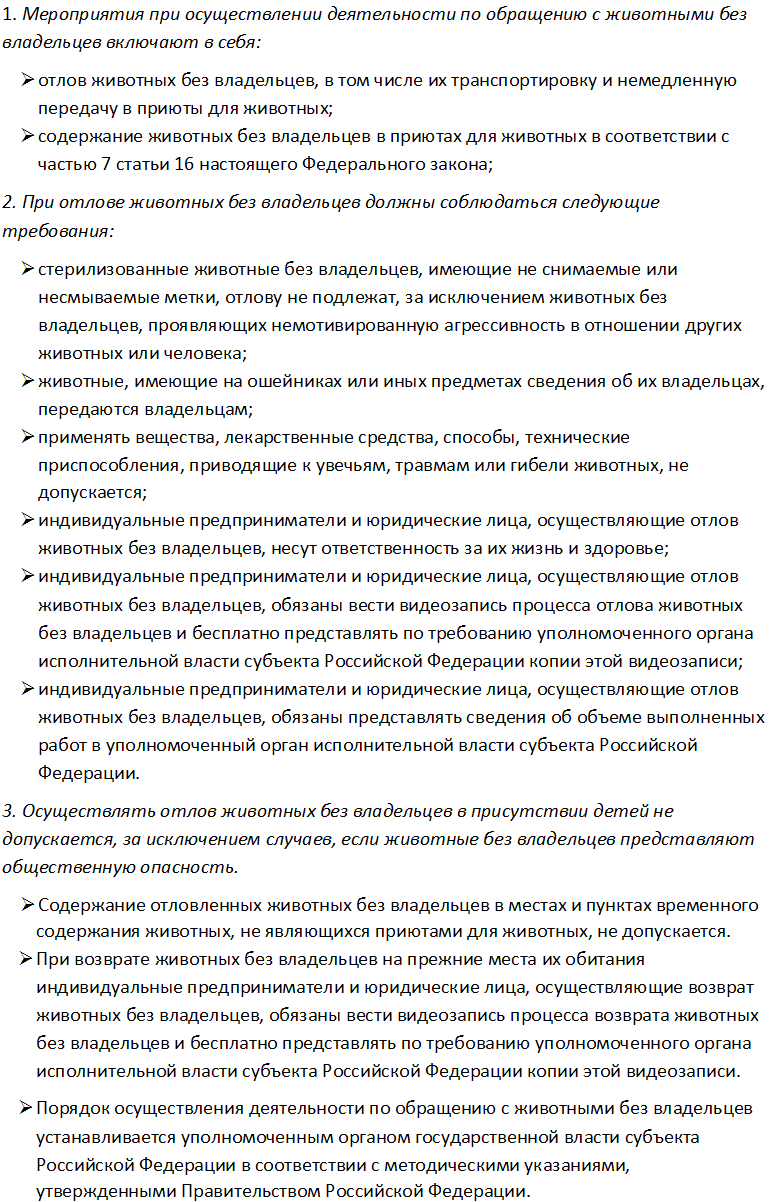 Согласно принятого нового законодательного документа, все оперированные животные, должны быть возвращенные на территории с которых проводилось изъятие.