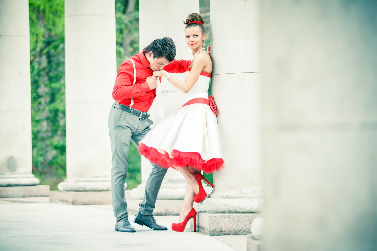 стиль стиляги в одежде жениха и невесты, 5 вариантов