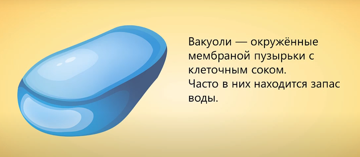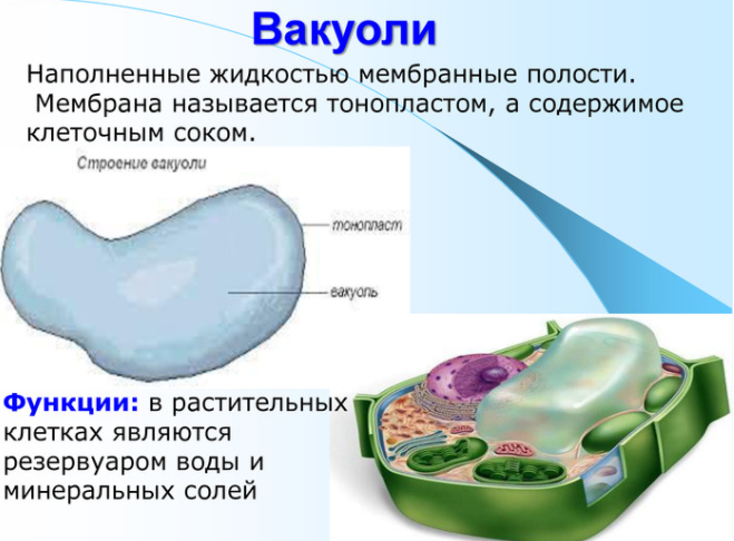 Вакуоль, это полость, которую наполняет клеточный сок и вещества, образованные клеткой