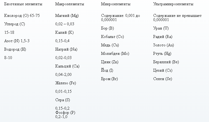 Каждый элемент имеет большое значение в животных и растительных клетках, не зависимо от его количества и содержания. В состав клетки входят нуклеиновые кислоты, углеводы, жиры, белки, органические вещества, минеральные соли, вода.