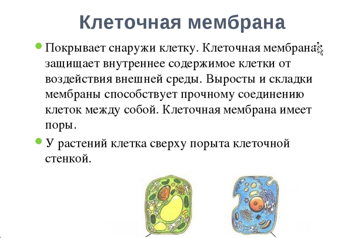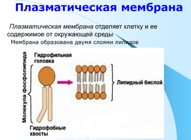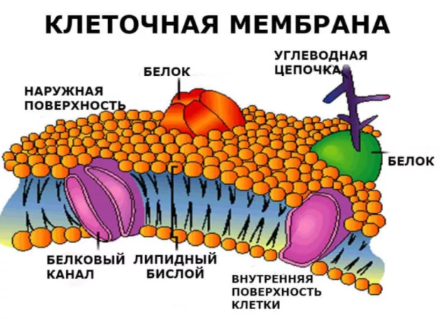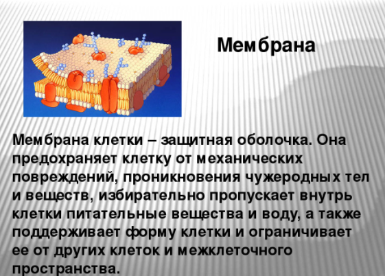Мембрана — окружает клетку со всех сторон и защищает ее, состоит из белков и липидов