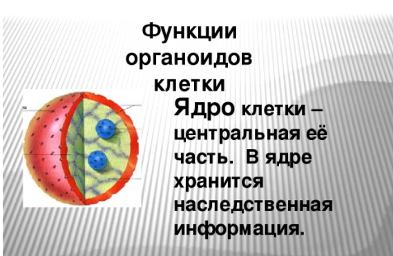 Важной составляющей клетки является ядро, содержащую генетический код и выполняющее функции регенерации, т.е., способность восстановления целостности клеточного тела.