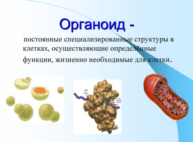 • Органоиды отсутствуют в клетках животных, но присутствуют в растительных.