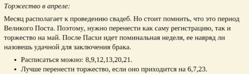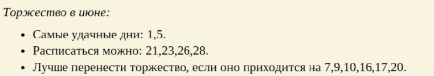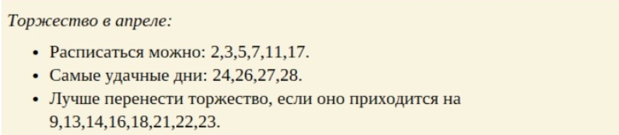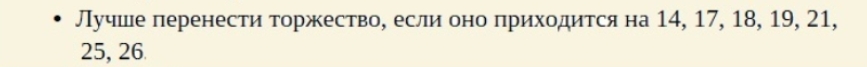 • Совершенно не подходят для похода в ЗАГС 9-й, 12-й, 15-й, 19-й, 20-й 23-й, 29 день.