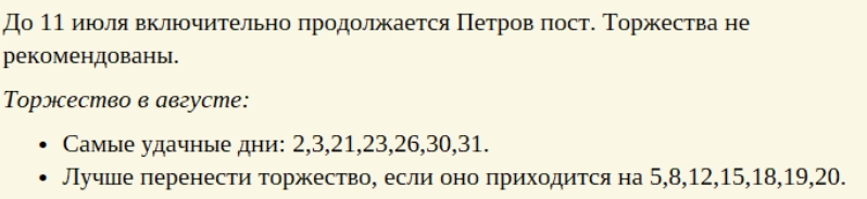 В древности люди говорили: «Выбирать нужно не только вторую половину, но и день для Божьего благословения брака». И это не спроста. Правильно подобранный день благотворно влияет на новоиспеченную семью. А вот не совсем удачный, может наградить молодых частыми размолвками и неприятностями в будущем.