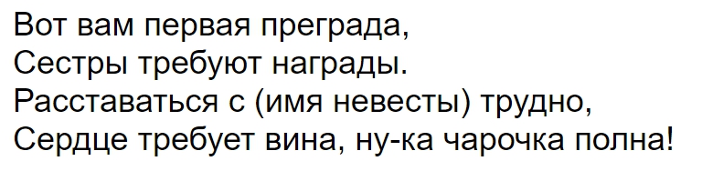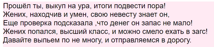 Слова на выкуп невесты