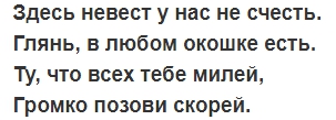 - Слова на выкуп невесты