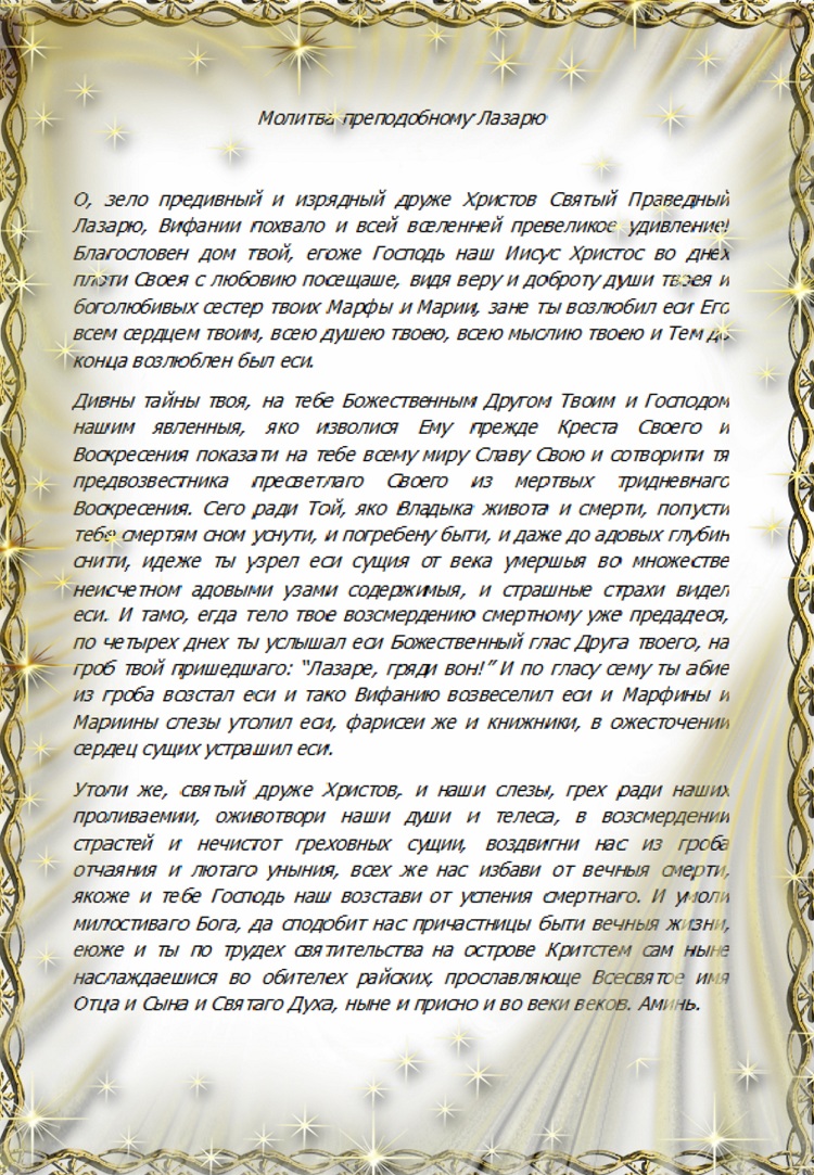 Молитва святому Лазарю