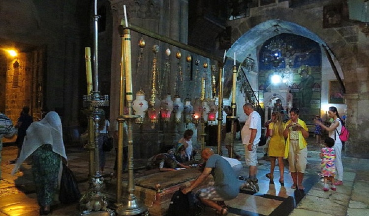 Святыня, к которой едут для поклонения и прикладывания. Ее местонахождение в Израиле, в Храме Гроба Господнего.