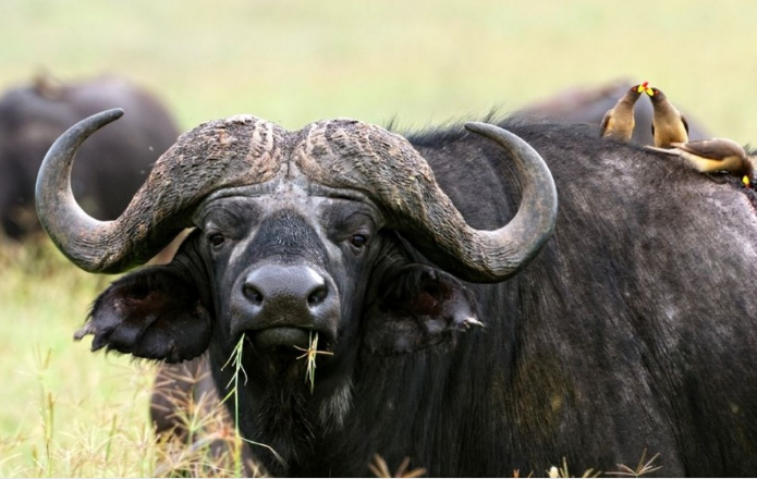 Африканский буйвол обитает в Африке, в тех местах, где рядом находится вода, так как ему необходимо до 40 литров в день. Это животное травоядное, почти не имеет врагов из-за своих внушительных размеров — 3,5 метра в длину, весом до 1 тонны. Местное население называет этого животного «Черная смерть», он убивает ежегодно больше людей, чем другие хищники на африканском континенте.
