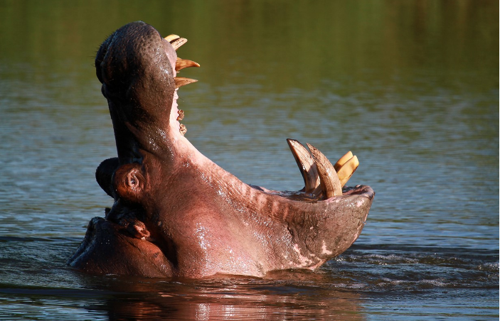 Бегемот обладает мощным телом, но, несмотря на это, развивает скорость до 50 км в час. Мощная челюсть открывается на 150 градусов, а сила захлопывания пасти — 230 килограмм. Клыки достигают длины 60 сантиметров. Количество человеческих жертв бегемота гораздо больше, чем у львов и крокодилов.