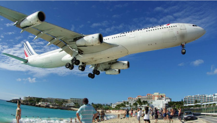 Аэропорт в Нидерландах практически упирается в берег Карибского моря к восторгу многочисленных отдыхающих. Хотя удовольствие сомнительное, так как мощная волна воздуха, исходящая от самолета, сбивает с ног.