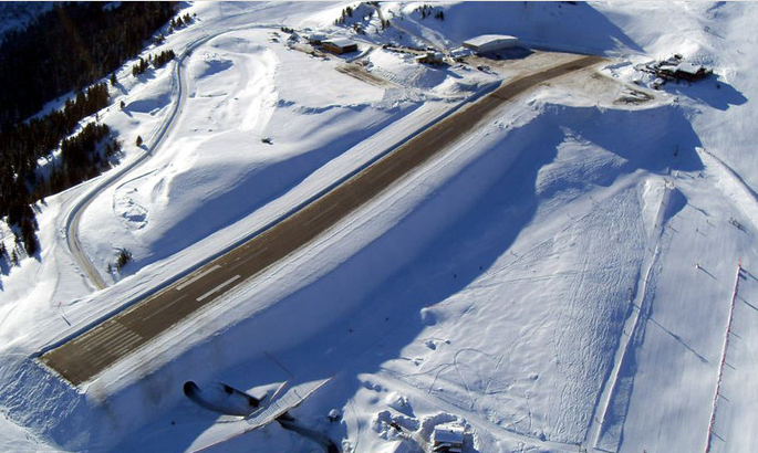 Длина взлетно-посадочной полосы аэропорта Куршавеля — 537 метров. Уклон горы -18 градусов. Построили аэропорт в таком неподходящим месте и-за большой популярности курорта.