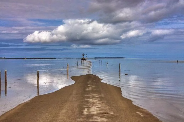 Дорога соединяет остров Нуармутье (Франция) с материковой частью страны. Пассаж дю Гуа открыт всего несколько часов в день, остальную часть суток дорогу заливает вода, слоем 4 метра. Не изучив расписание отливов и приливов, можно просто утонуть.