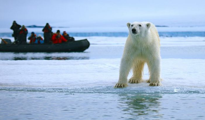Белый медведь весит 800 килограмм, длина тела — 2,5 метра. Среда обитания — приполярные районы Северного Полюса. Белых медведей можно наблюдать в России, Гренландии, Канаде, Аляске и Норвегии. Большой слой жира и густой мех не дают замерзнуть в самые лютые морозы. Они могут плавать в ледяной воде и при этом чувствовать себя комфортно. Почуяв запах человека, белый медведь приступает к его поискам. Одним ударом, белый медведь может оторвать руку. Известны случаи убийства нефтяников на Аляске и туристов в Северной Норвегии.